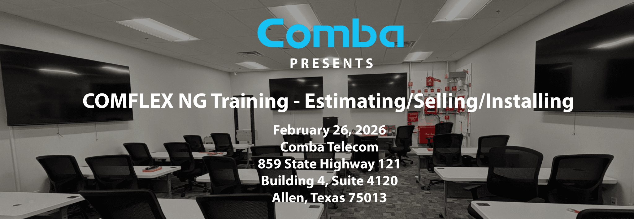 | Location: | Comba USA 859 State Highway 121 Building 4, Suite 4120 Allen, Texas 75013 Free parking. Coffee and drinks will be available throughout the event. Many fast-food restaurants located within minutes of the office. | ||
