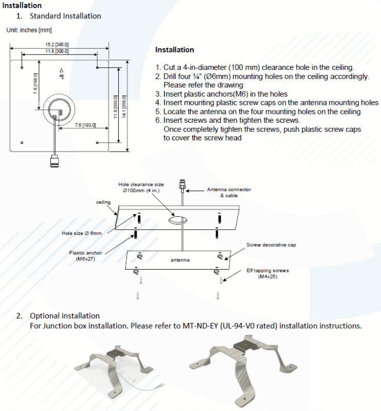 | Mounting/Connector Type | Ceiling Mount, N-female |