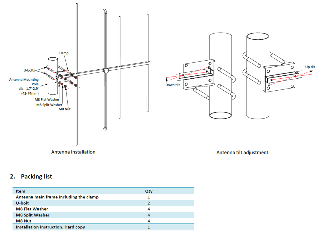 | Diameter of the pole mounting pole (in/mm) | ∅1.7 - 2.9 / ∅42 - ∅74 |