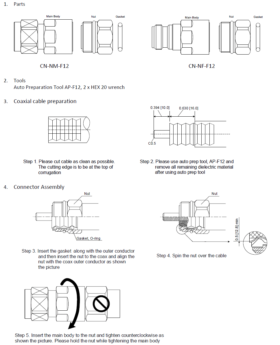 • N-type, 4.3-10 connectors for CS-F12PAR500, 1/2” Plenum rated Coaxial Cable