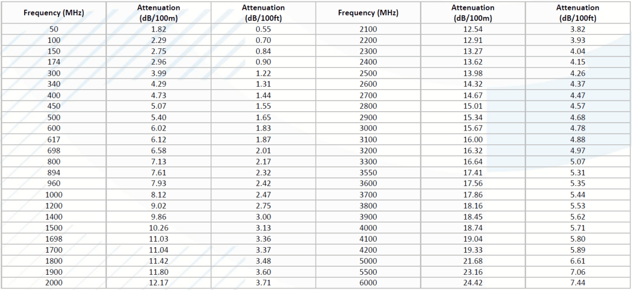 Note: Typical attenuation at ambient temperature +20°C (68°F) | ||