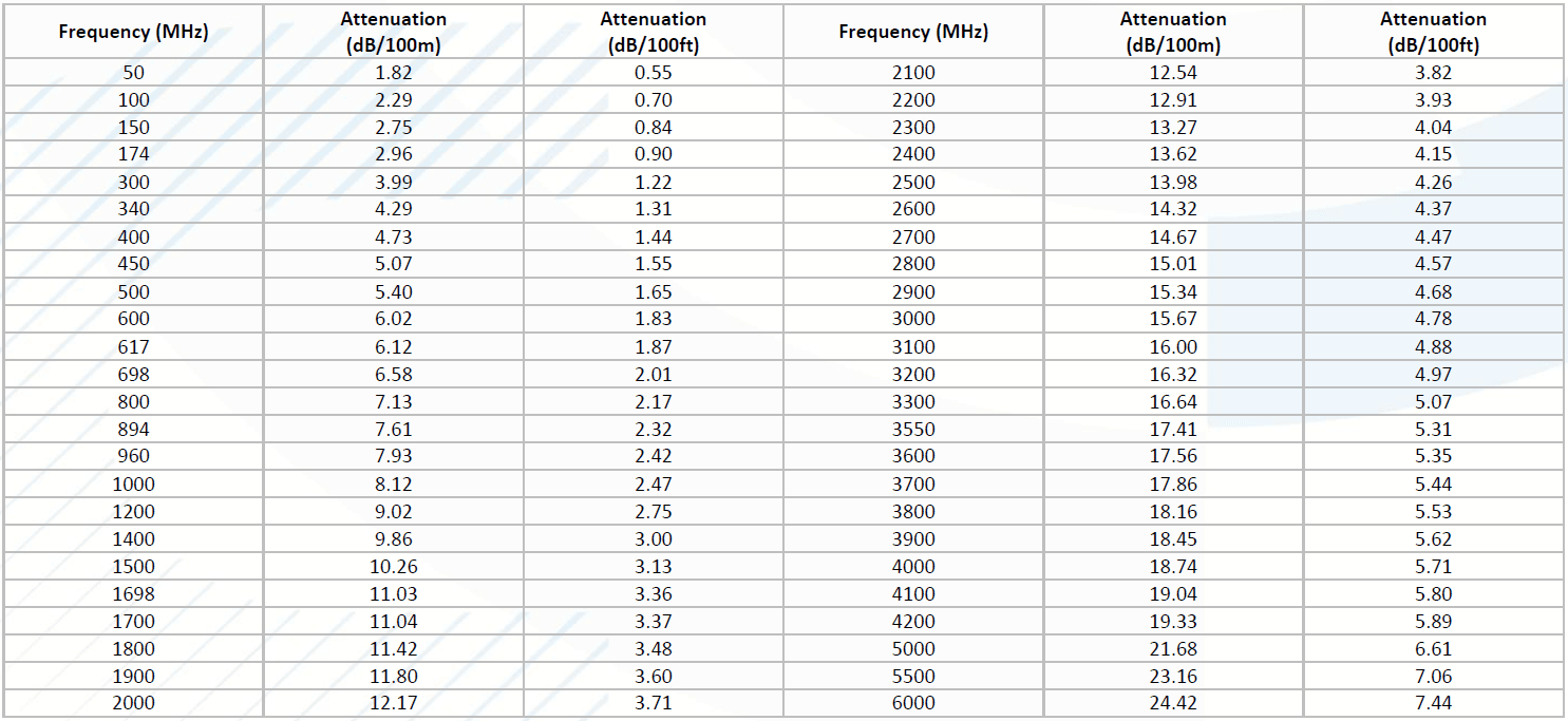 Note: Typical attenuation at ambient temperature +20°C (68°F) | ||