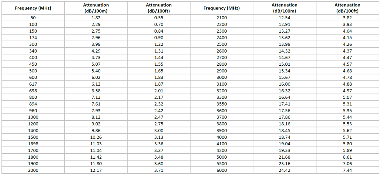 Note: Typical attenuation at ambient temperature +20°C (68°F) | ||