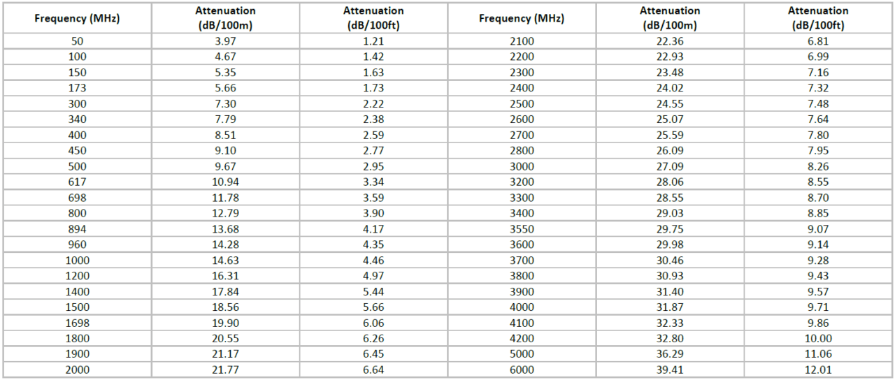 Note: Typical attenuation at an ambient temperature +20°C (68°F) | ||