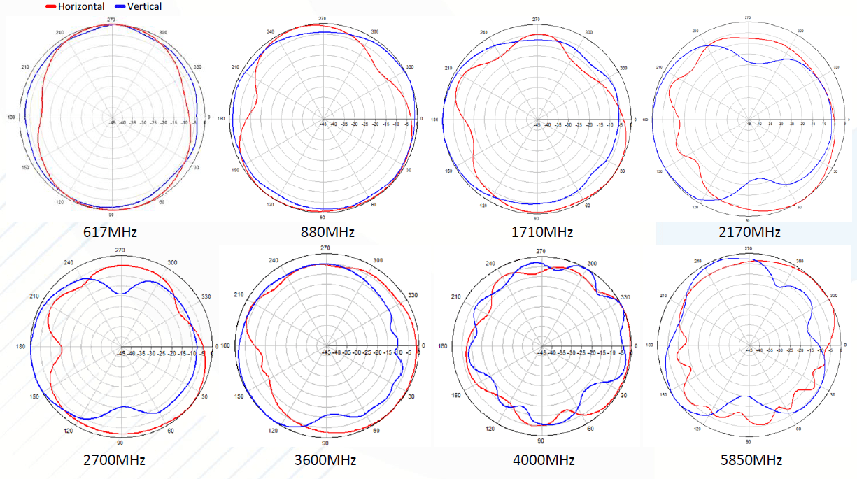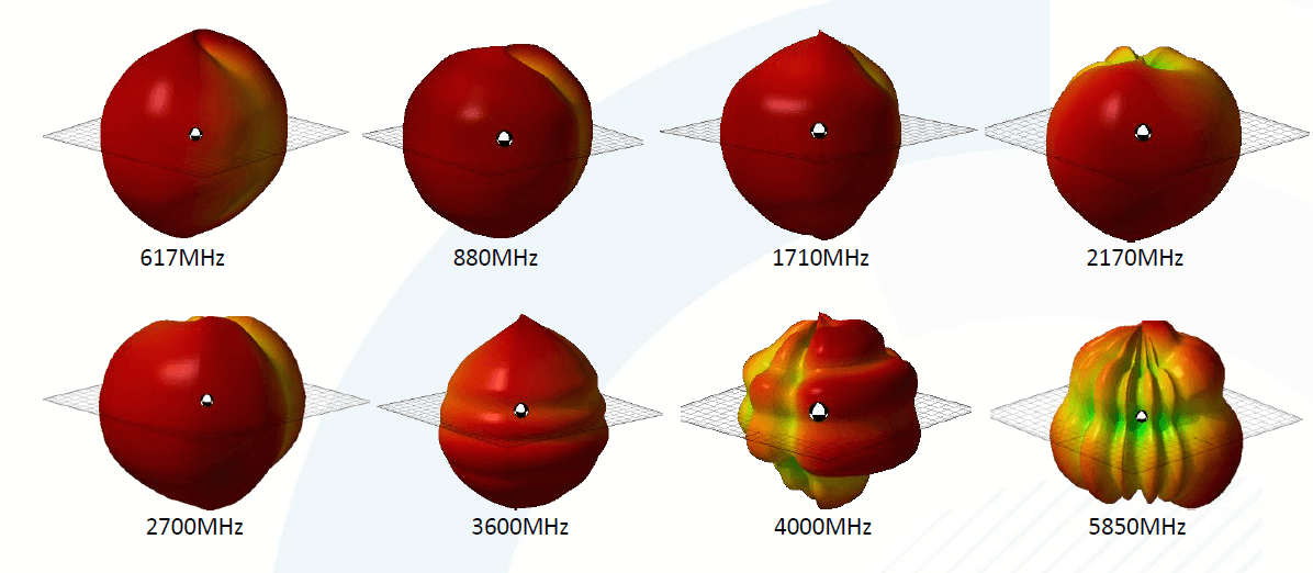 | Frequency (MHz) | 617 - 806 | 806 - 960 | 1690 - 2700 | 3300 - 4200 | 4900 - 6000 |