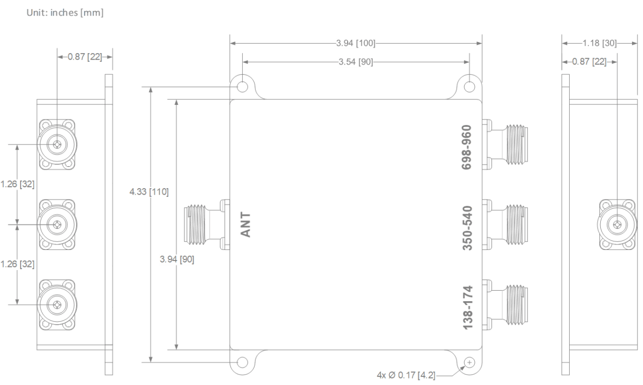 | Frequency (MHz) | 138-174 | 350-540 | 698-960 |