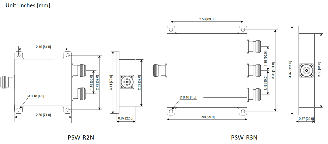 Weight (lb/kg) PSW-R2N PSW-R3N PSW-R4N | 0.55 / 0.25 1.12 / 0.51 1.32 / 0.60 |