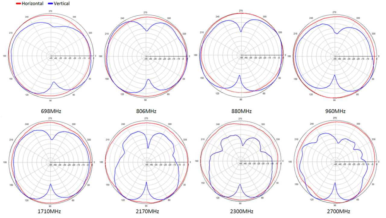 | Frequency (MHz) | 698-806 | 806-960 | 1695-2200 | 2300-2700 |