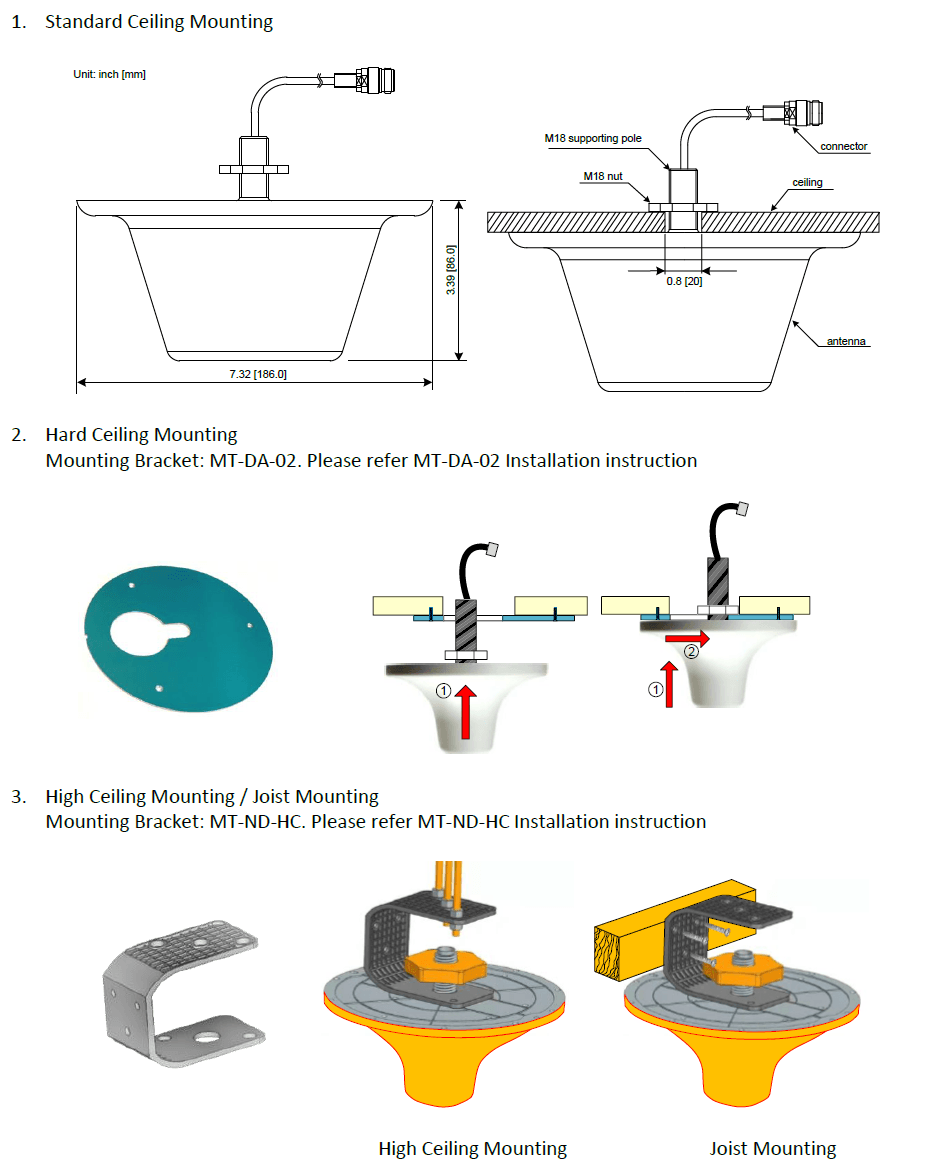 * Note: Recommended for indoor application and the antenna can be used “outdoor garage rated”